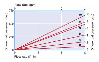 3 For liquids with viscosities differing from water, multiply the pressure drop by the viscosity in cP.