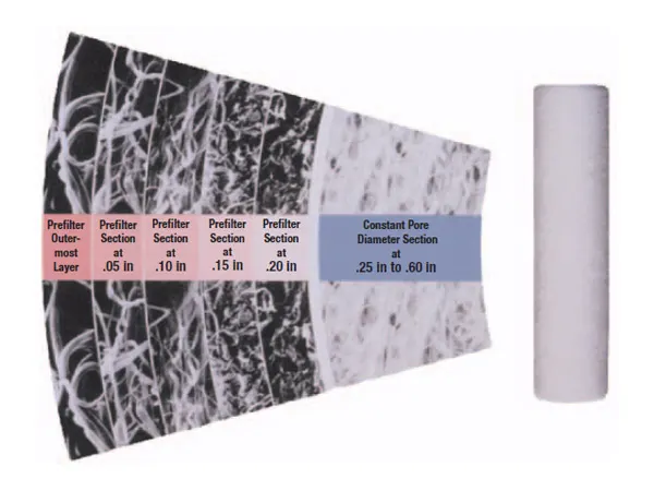All Profile II ink jet filters feature a single-open-ended construction with a dual O-ring connection. Standard O-rings are ethylene propylene. There are two options for the closed end of the filter: a flat end cap and a bomb finned end cap. An advantage of the bomb fin is that it easily locates and fixes the filter in the housing.